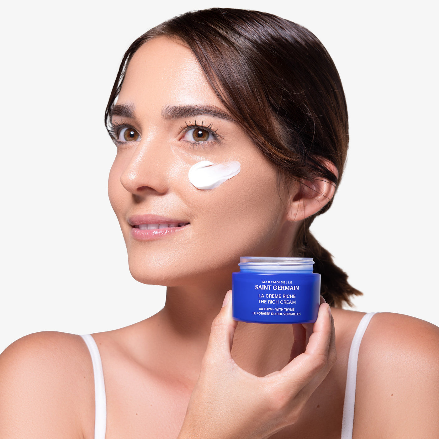 Discover the essence of nature and French excellence with Mademoiselle Saint Germain's Rich Thyme Cream. Formulated with thyme with powerful antioxidant properties, harvested in the prestigious Potager du Roi in Versailles, this cream soothes, regenerates and repairs the epidermis, while offering optimal protection against external aggressions.